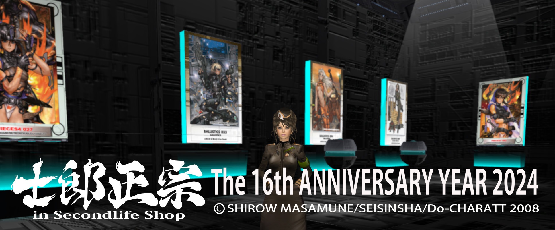 士郎正宗inセカンドライフショップは、「アップルシード」や「ドミニオン」など、数多くの漫画を世に送り出し、多数の作品がアニメ化もされ、多くのクリエーターに影響を与えた、世界的クリエーター士郎正宗氏と青心社様の御好意により米国リンデン・ラボの運営するメタバースプラットフォーム「Second