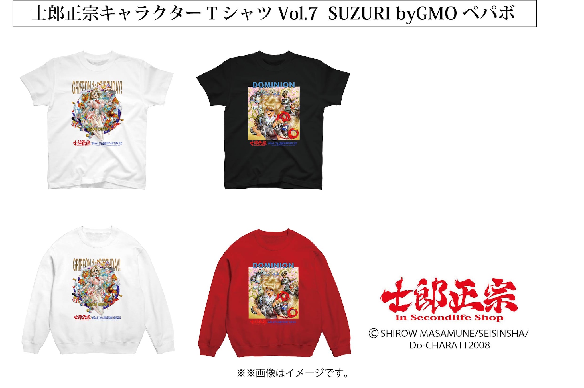 「士郎正宗キャラクターTシャツorスエット Vol.7」SUZURI byGMOペパボ サイトで発売。