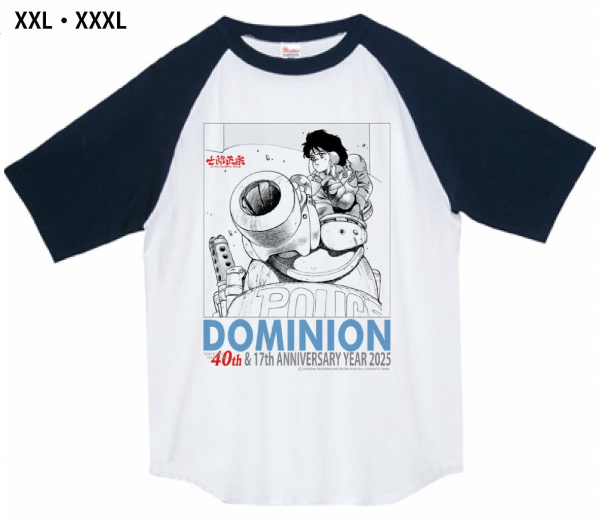 ■士郎正宗・漫画デザインTシャツVol.02 XXL・XXXL ドミニオン レオナ尾崎 綿100% ラグランTシャツ。ホワイト×ネイビー