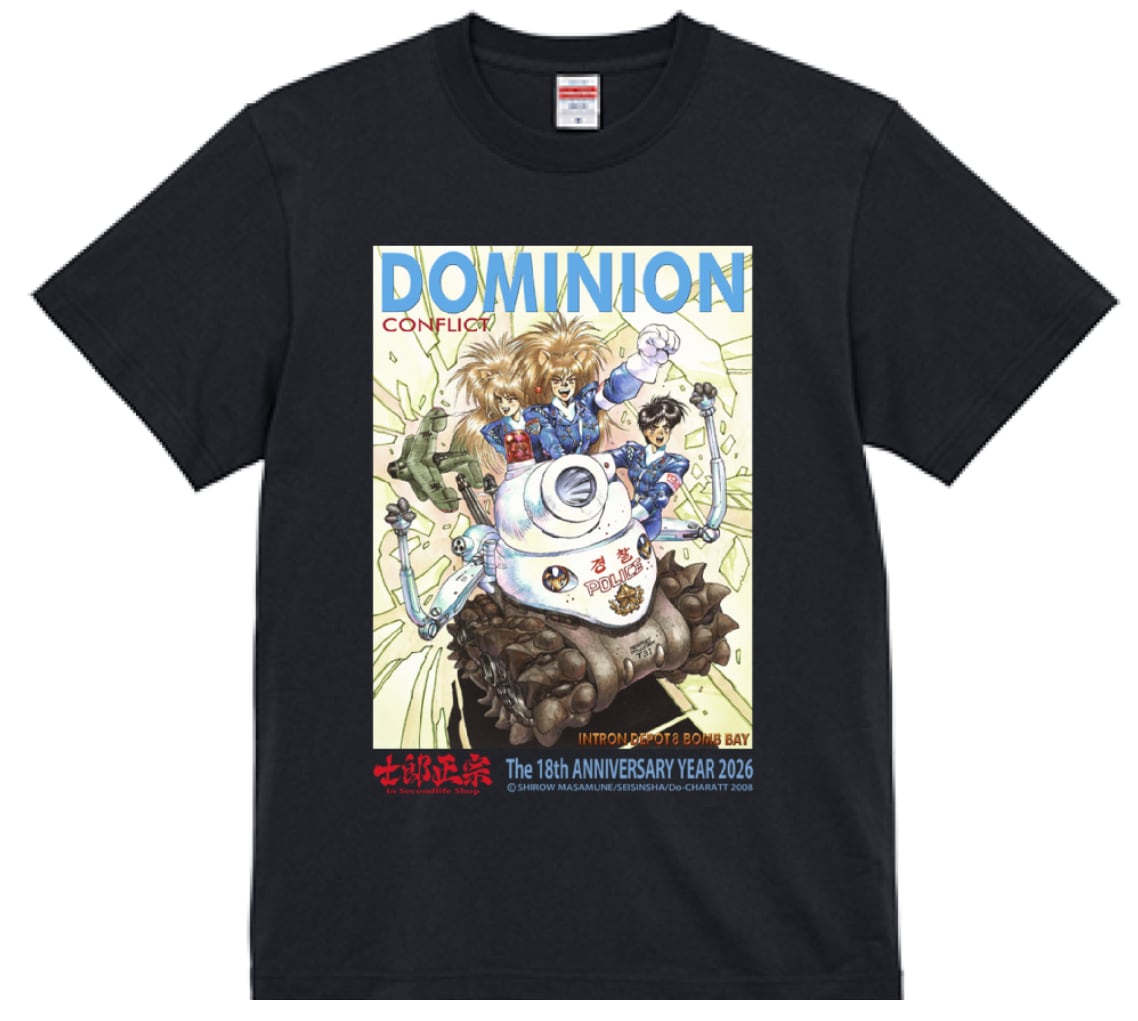 士郎正宗キャラクターTシャツVol.18 INTRON DEPOT8 ドミニオンコンフリクト 綿100% ブラック