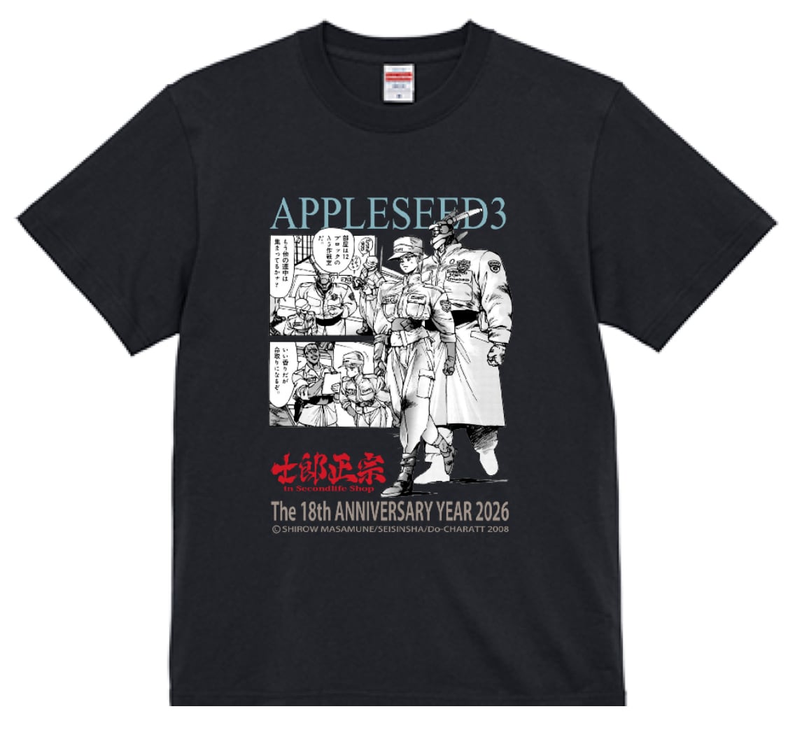 「士郎正宗inセカンドライフショップ」では、士郎正宗氏の「アップルシード」や「ドミニオン」「オリオン」の本編カットをデザインしたTシャツ、「士郎正宗・漫画デザインTシャツVol.05」を販売します。