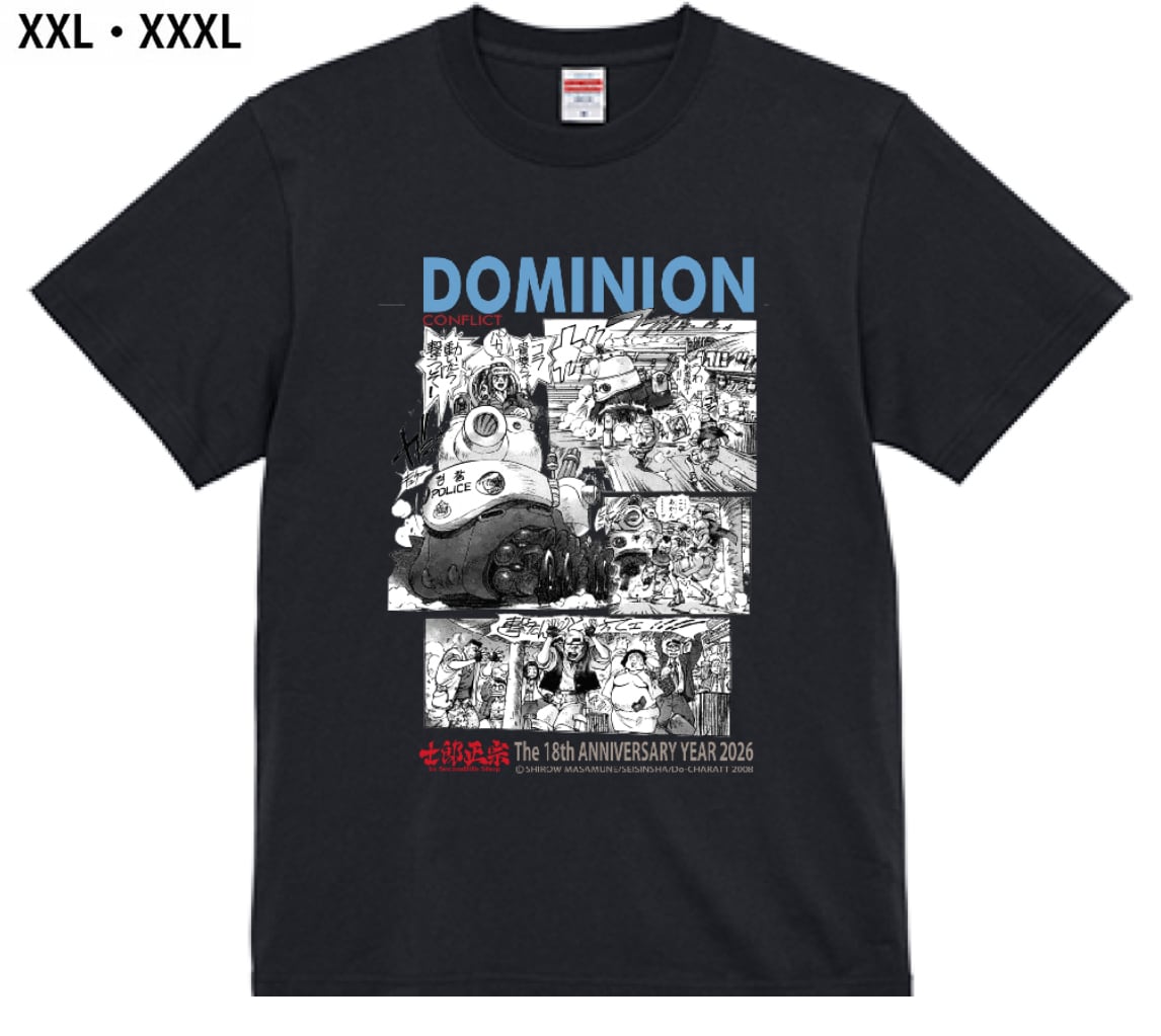 士郎正宗・漫画デザインTシャツVol.05 XXL・XXXL 「ドミニオンC」ボナバルド&レオナ「撃たんとって!!」 綿100% ブラック