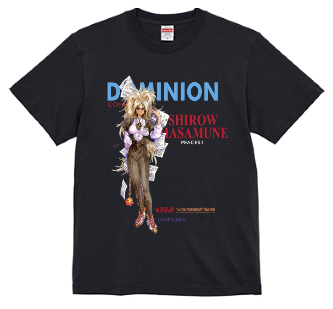 士郎正宗キャラクターTシャツVol.20 PIECES1 ドミニオンコンフリクト 秘書風ユニプーマ 綿100% ブラック